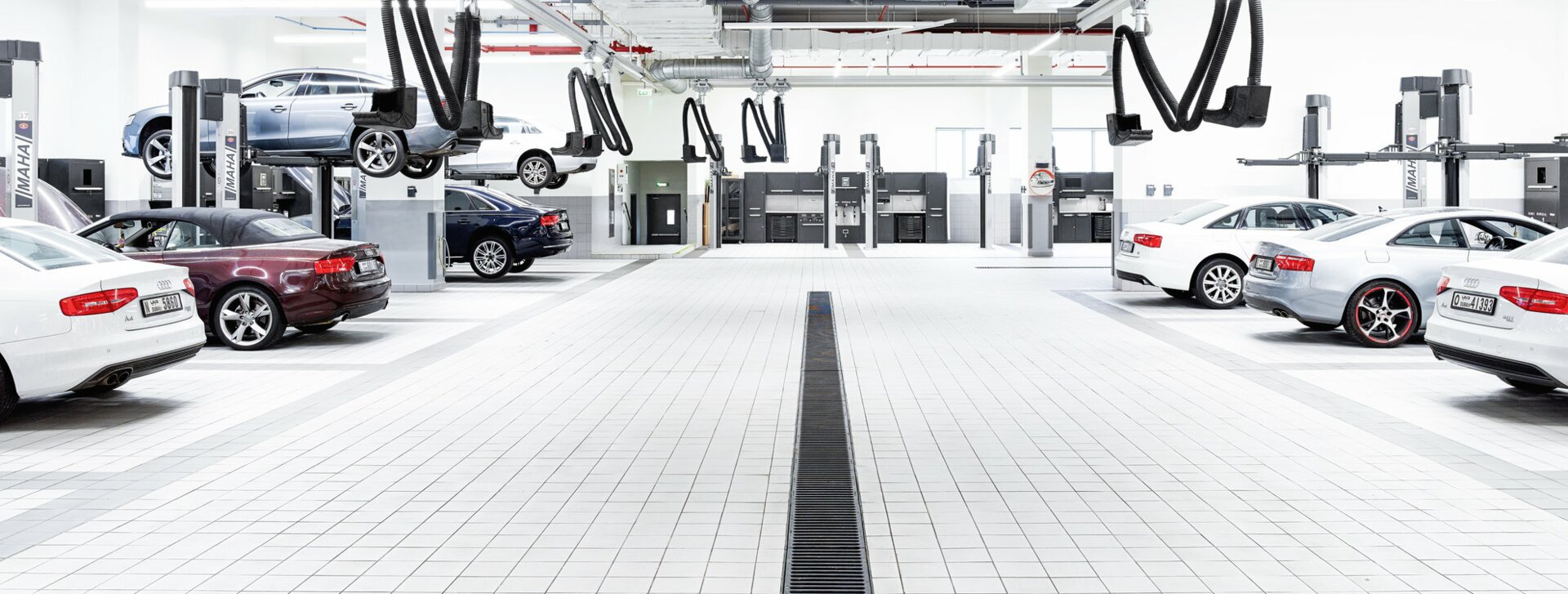 A lot. An awful lot. With 86 high-quality lifts, test lanes and diagnostic products in the world’s largest Audi Centre in Dubai, we cover all areas of application for a total of 93 workstations operating in the service sector. No ifs, no buts. And no compromises either. We deliver strong performance in a country that loves records.