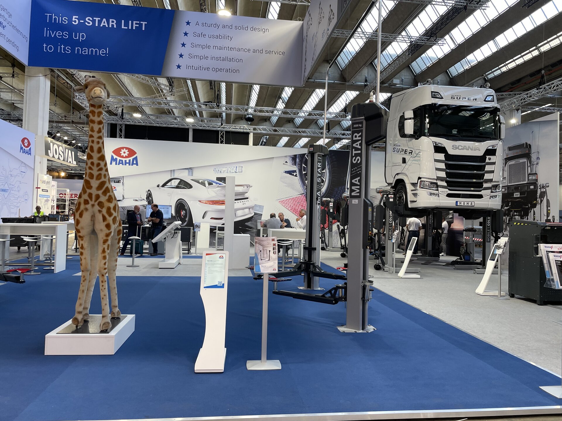 We have only just reached the halfway point of the MAHA trade fair innovations. As announced at the beginning, the visitors were led from one sensation to the next, so the innovation in the field of performance measurement technology could not be missing. The completely redeveloped MSR 5000 is based on a PLC-programmed dynamometer and guarantees precise, reliable and reproducible measurement results. This also enables high-power and high-torque e-vehicles to be measured. The star of the two-post lifts also made its appearance on the trade fair stage – the MA STAR triple safety with 3.5 t, 5.5 t and brand new with 6.5 t load capacity. The five-star lift stands out for its unique design and, above all, its “triple safety”.