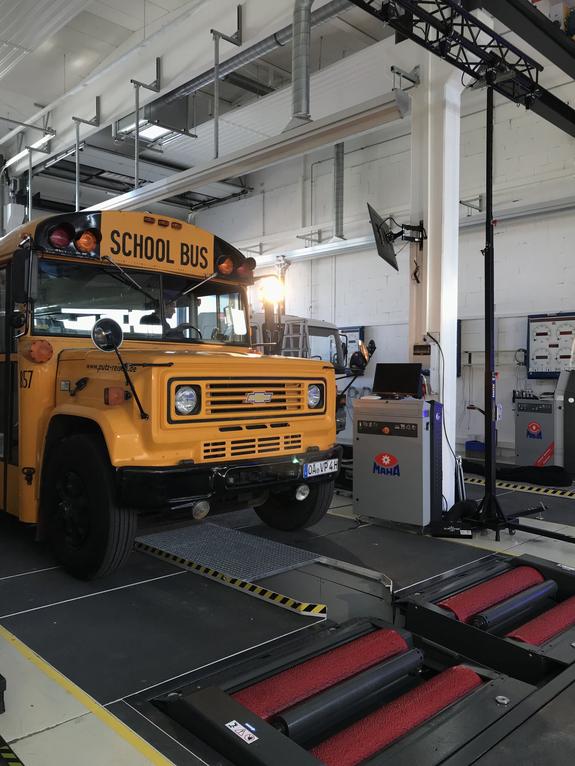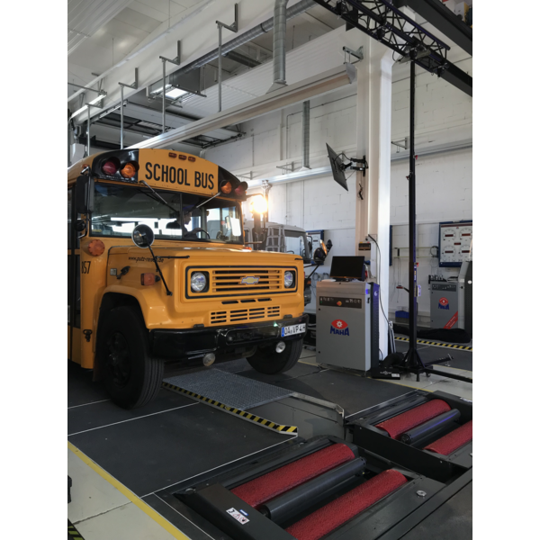 The latest product from MAHA was presented to more than 100 live participants at the MAHA Training Center in Haldenwang on 30 June 2022. For all those invited who were unable to travel in person, there was the option of joining the event digitally. More than 200 online participants took advantage of this opportunity. In total, partners, customers, friends and trade press from over 35 countries followed the unique bilingual event. After the theoretical part of the product launch, the black curtain fell, revealing under fog the star of the day: the CONNECT TRUCK with a yellow US school bus standing for inspection. This allowed the participants to convince themselves personally and virtually of the "10 out of 10 product advantages" that make a compelling case for the purchase of a CONNECT brake tester.