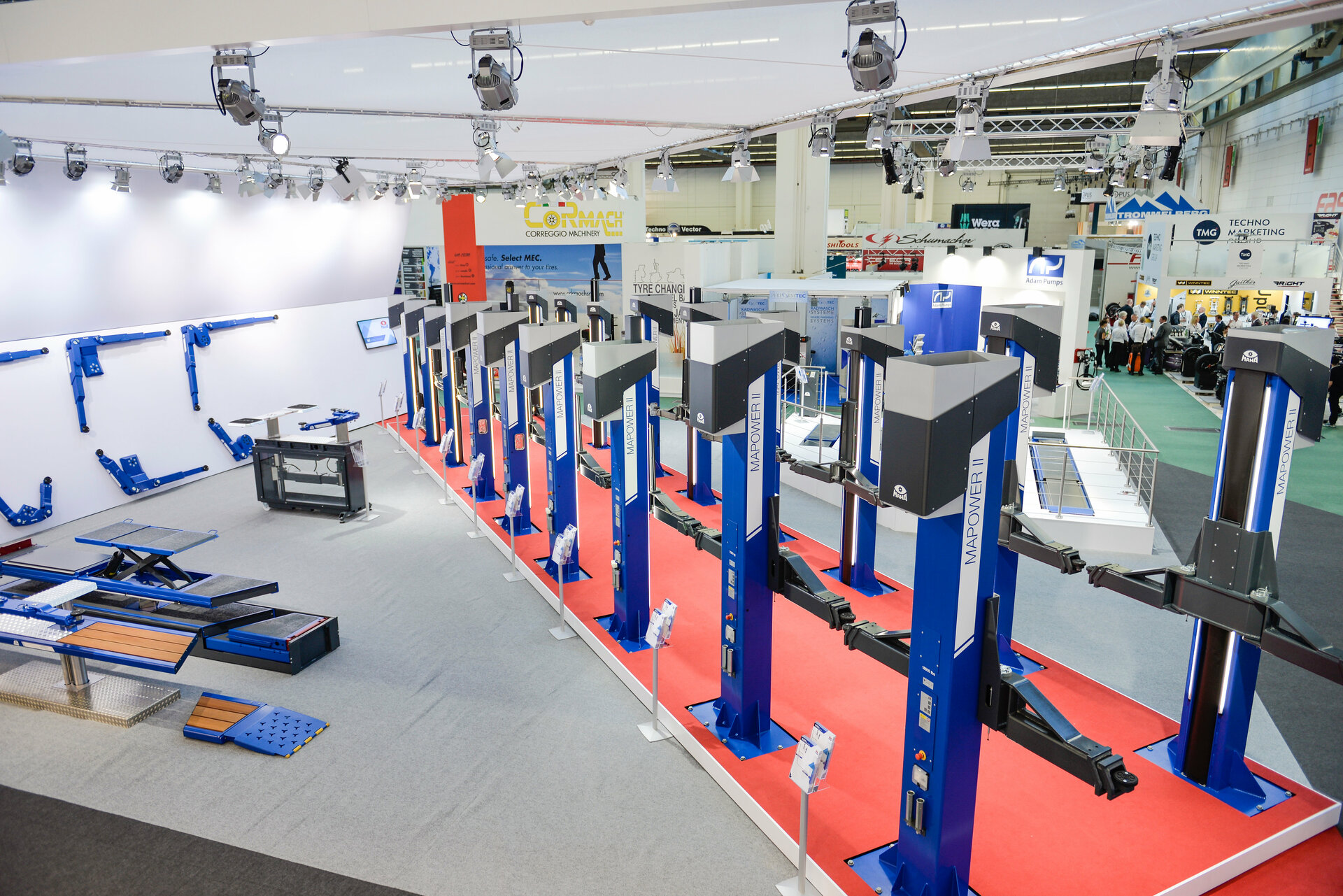 In addition to a chic design, the family of lifts from MAHA cuts an impressive figure with nine models in six different load capacity classes featuring technologically advanced features, and it offers a number of highlights for users too. Users appreciate the fact that they can access vehicles with ease, for example, and that the lifts offer a high level of holding variability, because this means that the same lift can be used to carry out maintenance and repair work on different sizes of vehicle. The available load capacities cover the entire spectrum from small cars to next-generation commercial vehicles with long wheelbases. What’s more, the MAPOWER II lifts are extremely sturdy, have a functionally sophisticated design and boast a high level of production quality as they are made in Germany. Thanks to their sophisticated design and high-quality materials, the lifts have a long service life and are put to highly reliable use around the world as quality products.