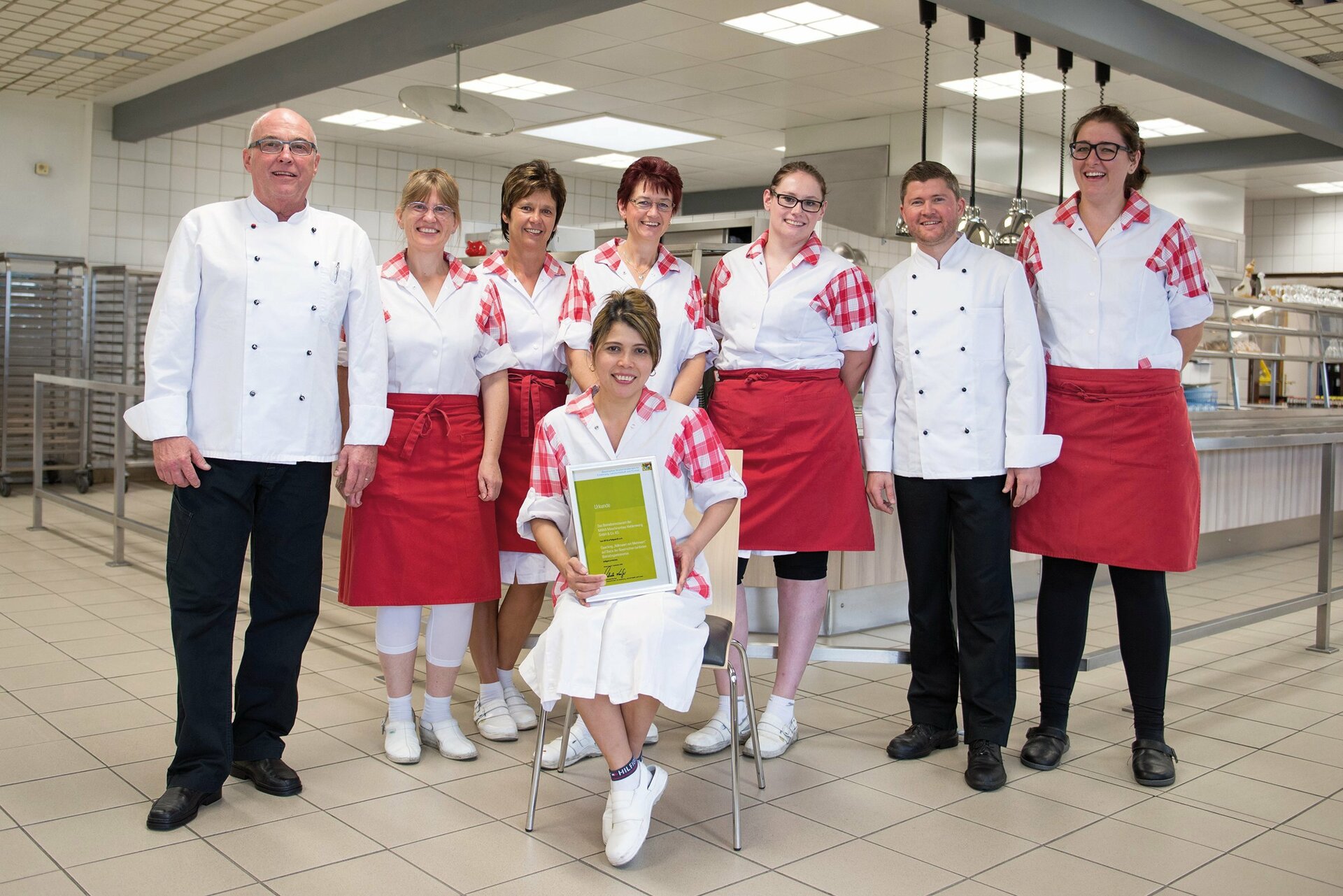 The Bavarian State Ministry of Food, Agriculture and Forestry also presented the company with an award for the improvement of catering services for employees. The event was preceded by a coaching session on "Nutritional value and added value", in which only the team from the MAHA restaurant of the Allgäu region took part. The focus was on the question of how health, regionality, ecology and appreciation can be integrated into everyday life in large-scale catering facilities. The discussion focused in particular on how health considerations could be included more in the selection of dishes, what could be optimised in the preparation process and how the craftsman's own contribution could be further improved.