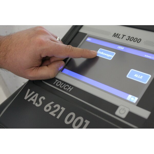Haldenwang, 7 January 2019. Special requirements call for special solutions. This is precisely why MAHA developed a software version tailored specifically to the needs of Volkswagen AG for the proven MLT 3000 headlight tester. With the VAS 621 001 version for Volkswagen, the workshop supplier is thus currently the only manufacturer to offer a product that has received Volkswagen’s official approval for Group-wide use in its authorised workshops. The new Touareg’s headlights may only be adjusted with this equipment – provided that the latest VAS software is used. And with good reason!