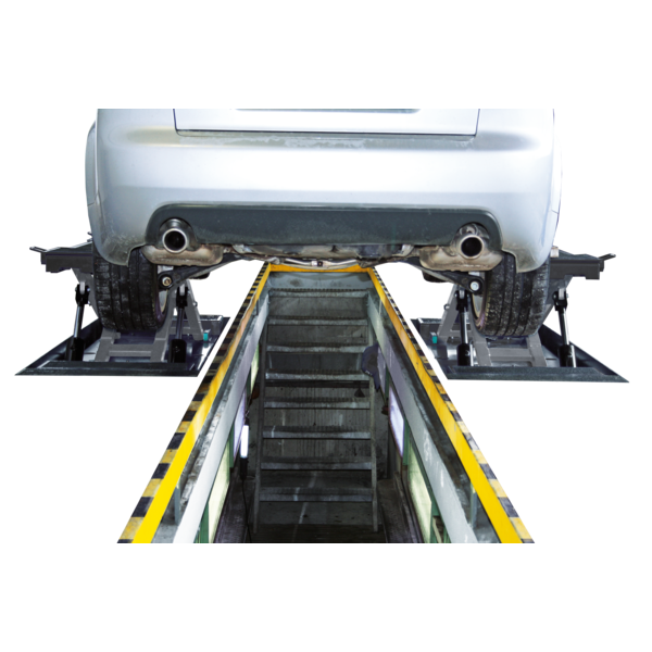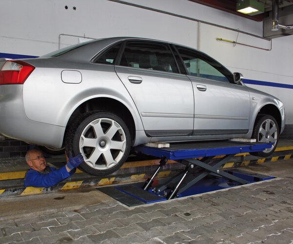 - Flush-floor installation over pit, no mechanical connection between both scissors units