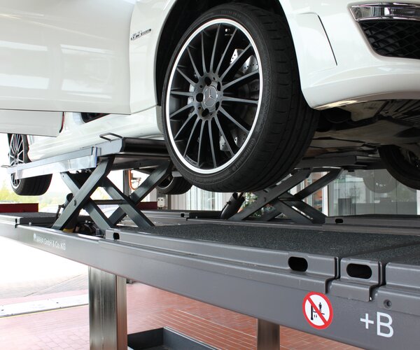 - Lift can be driven onto easily thanks to wheel-free jack platforms with full driving platform width