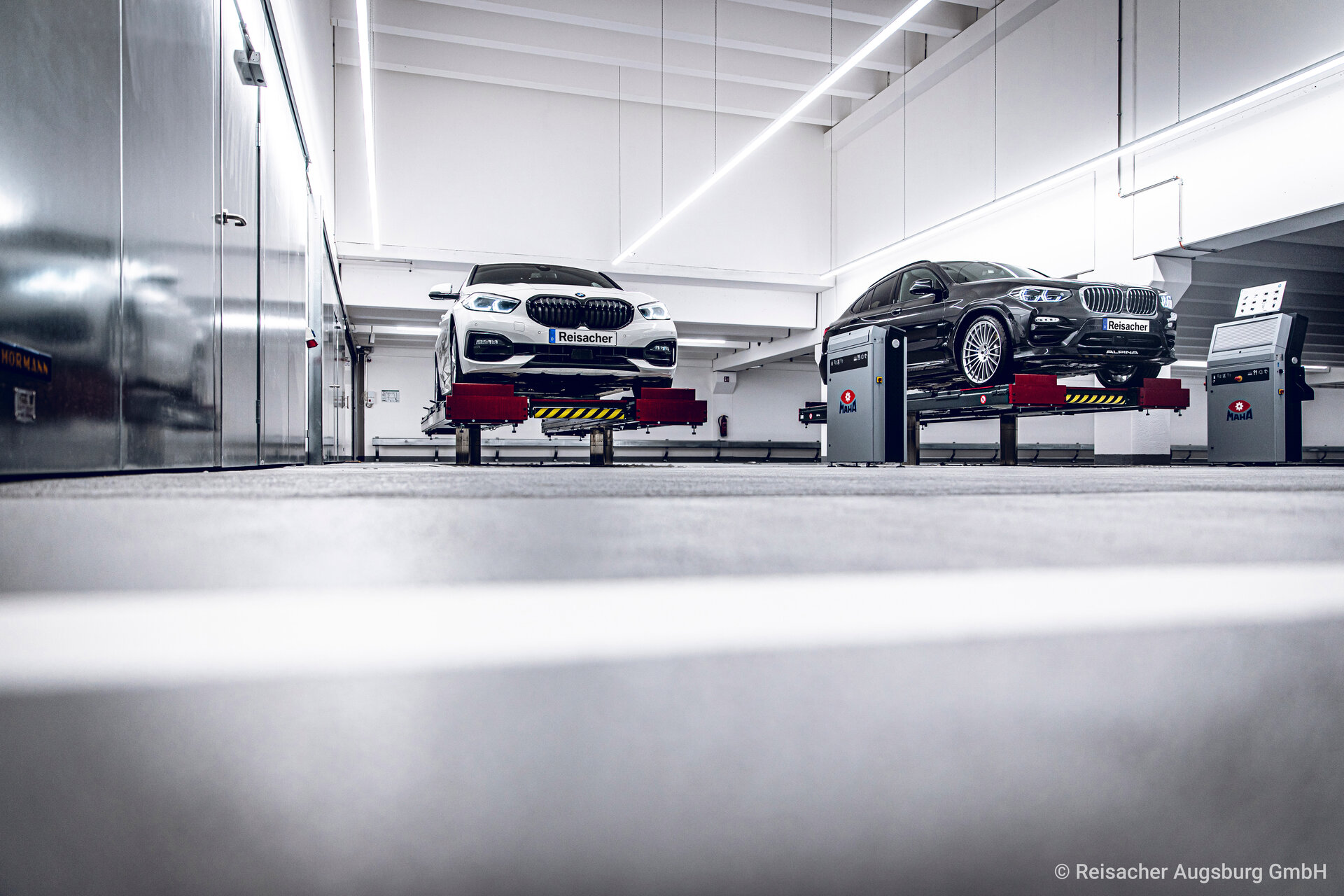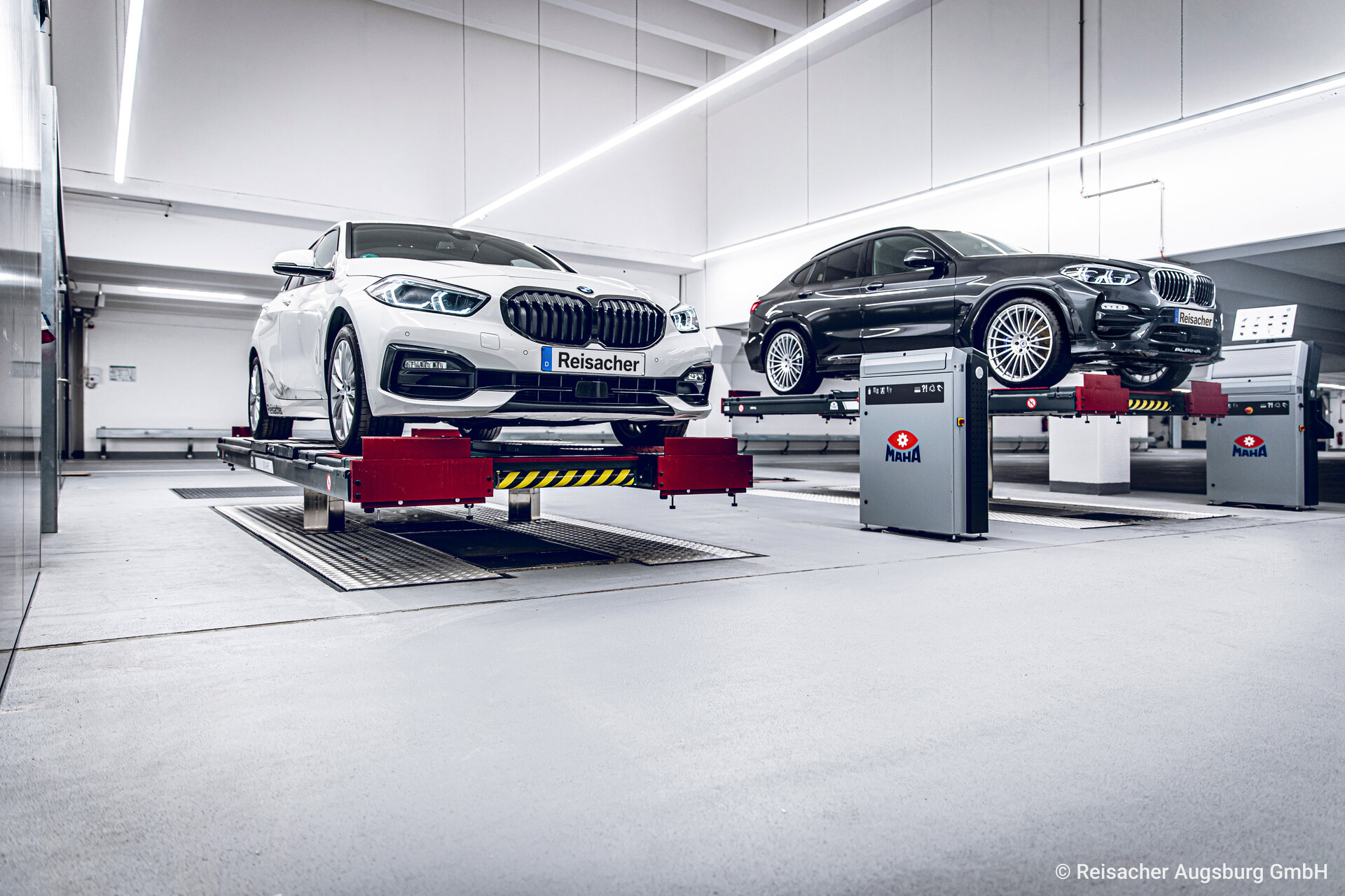 The complete planning including customer-specific special construction projects was completed in the second half of 2019. At the end of 2019 MAHA began supplying Reisacher with lifts, brake testers and other accessories. With a great deal of commitment and well thought-out planning, MAHA and Reisacher pursued a common goal: the completion of the customer-oriented car dealership in autumn 2020, enabling Reisacher to offer its customers the most comprehensive range of BMW, MINI, BMW Motorrad as well as Alpina vehicles in Augsburg and the surrounding area. "There is no comparable project", says owner and managing director Peter Reisacher.